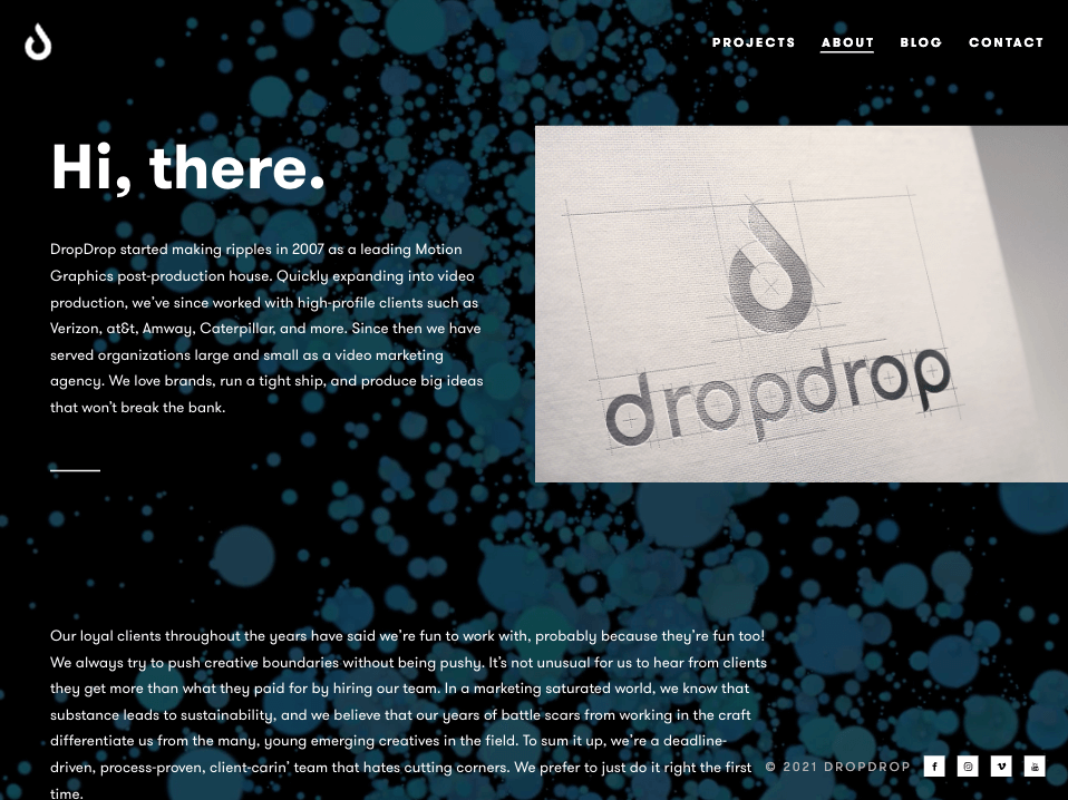 Favorite Feature: The strong, bold blackletter brand assets make this highly minimal website POP.